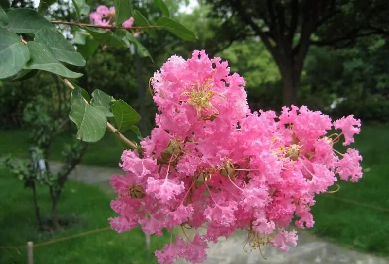 百日紅是落葉喬木,高度十米左右,花期是六月份到九月份,花的顏色包含有白色、紫色以及紅色,它適合種植在園林和公園里,也可以種植在道路兩邊,不僅有觀賞價值,還有凈化空氣效果。下面情況百日紅花圖片大全大圖。