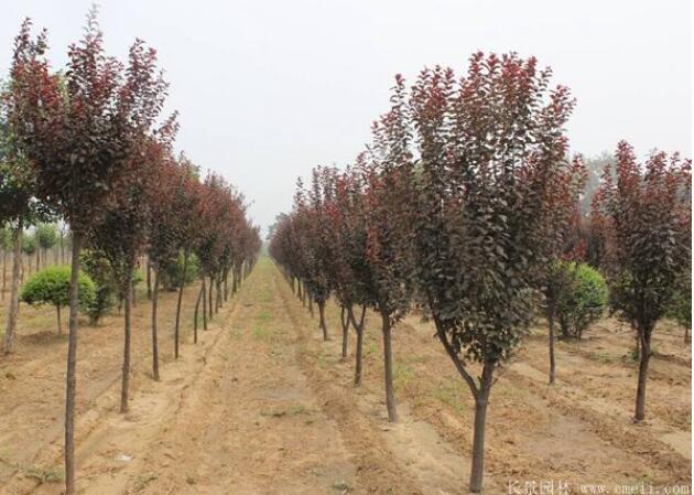 歡迎您訪問(wèn)長(zhǎng)景園林, 苗圃自產(chǎn)自銷(xiāo)150畝紫葉李,3~12厘米有大量現(xiàn)苗供應(yīng),目前5公分紫葉李價(jià)格在70~100元,冠幅在1.7米、高度2.8米左右。