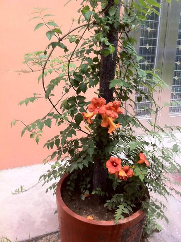 因為凌霄花很皮實,用其枝干扦插上盆就可成活,培育成觀花盆景,別有風(fēng)味。所以盆栽的重點不在于如何養(yǎng)活它,而在于如何養(yǎng)好它,下面有幾點凌霄花盆栽的日常養(yǎng)護要點,供花友參考。