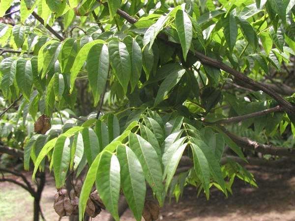 復(fù)羽葉欒樹的葉子在它的外緣有細(xì)小的鋸齒,葉子的前端稍尖,橢圓狀;