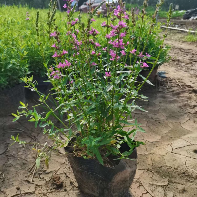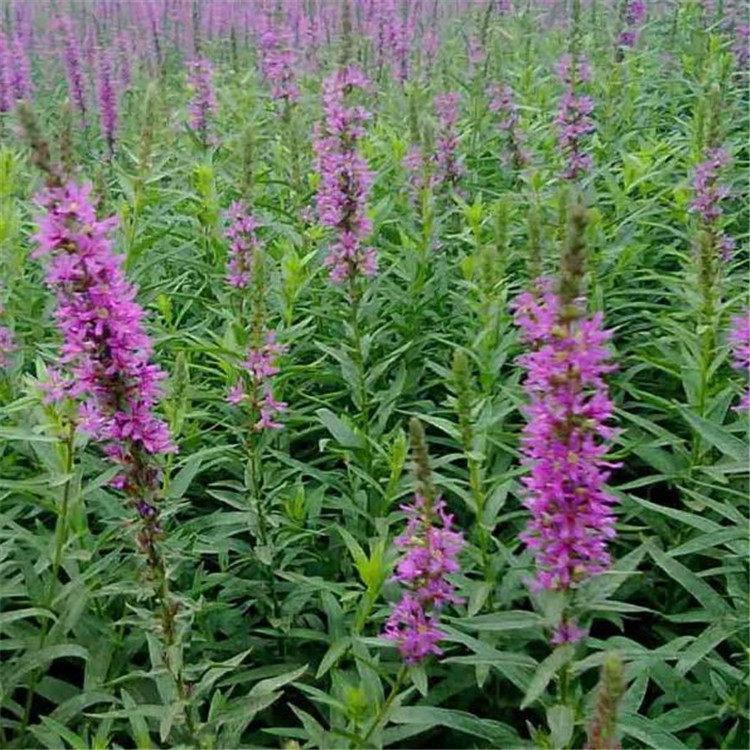 千屈菜又叫水枝柳、水柳、對(duì)葉蓮等,多年水生宿根草本植物,植株高約1米,直立生長,主桿上有許多分枝,葉子對(duì)生,披針形。葉子長4~6cm,寬1cm左右。總狀花絮長在最上面,長約30cm,花朵簇生。喜歡溫暖濕潤陽光充足的環(huán)境,在我國南方和北方地區(qū)都有野生的,生長在沼澤、湖畔、池塘等淺水地區(qū)。它耐寒性強(qiáng),在山東、河南、北京等地均可自然越冬,霜降以后地面部分枯死,地下部分進(jìn)入泥土休眠,在淺水的河邊和低洼潮濕的地方生長態(tài)勢最好,對(duì)土壤的要求不嚴(yán)。千屈菜的生命力極強(qiáng),管理也可粗放,栽培的環(huán)境只要保證光照充足、通風(fēng)良好即可,在生長期要經(jīng)常打頂促使其矮化分蘗,長出豐滿茂密的株型。