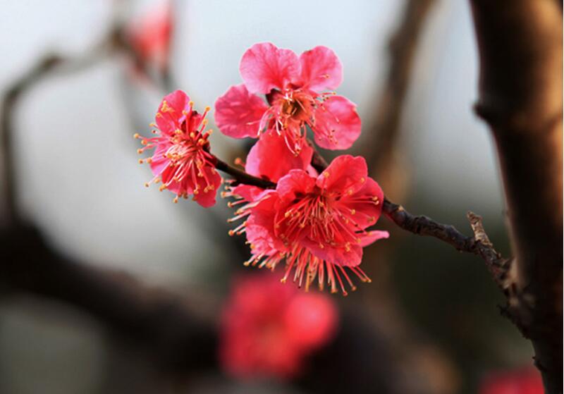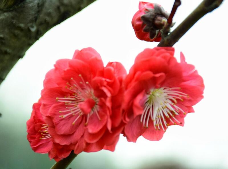 紅梅花圖片 時間:2025-11-11 22:10:02 紅梅花是梅花當(dāng)中的一種類型,梅花是分為多種類型的,其作用非常高,可以當(dāng)做園林綠化使用,紅梅花是屬于一種常綠喬木,根據(jù)不同的品種有著不同的成長高度,平均高度是在4米到10米之間,每年的果期是在5月份6月份下面是小編為大家找的紅梅花圖片大全