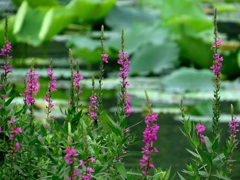 或是成片栽植在淺水的岸邊、池塘、環(huán)城河等地方,與荷花、睡蓮、菖蒲等水生植物相間栽植,具有非常高的觀賞價值,千屈菜也有盆栽擺放庭院中觀賞,也可切花用。