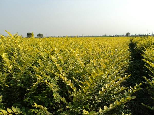 金葉女貞沒有金森女貞耐熱,金森女貞在35℃以上高溫不會(huì)影響其生態(tài)特性和觀賞特性;金葉女貞則表現(xiàn)為葉片蔫萎。